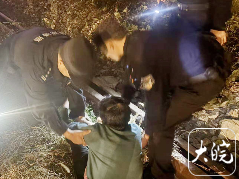 在报警群众的指引下,民警最终在一条废弃铁轨上找到了瘫坐在地的老人。此时,老人已冻得手脚冰凉、瑟瑟发抖,无法正常说话和行走。民警迅速上前安抚老人情绪,小心翼翼地将其搀扶至路边避风处。